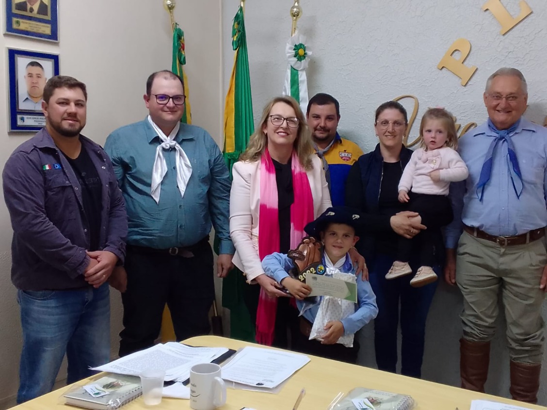 A Câmara de Vereadores, através da Vereadora Mara Cristina Turmina Sangalli com aprovação Plenária conferiu as Moções de Aplauso Legislativa aos integrantes do CTG Tronco do Araçá que se fizeram presente à Sessão juntamente com a família.