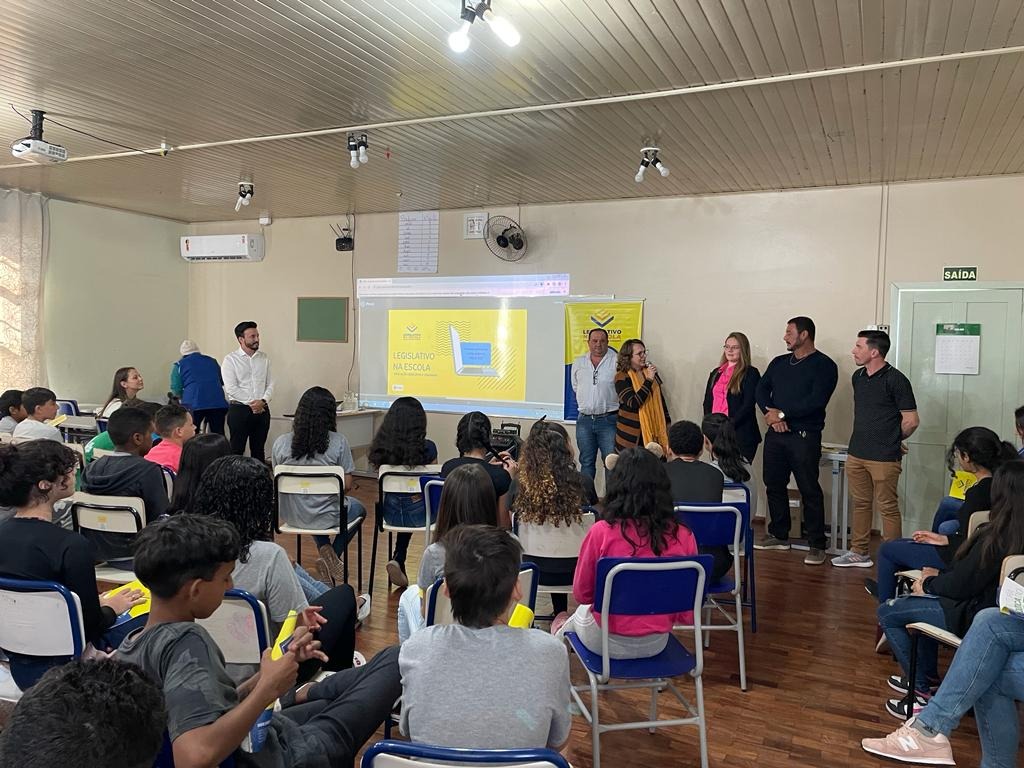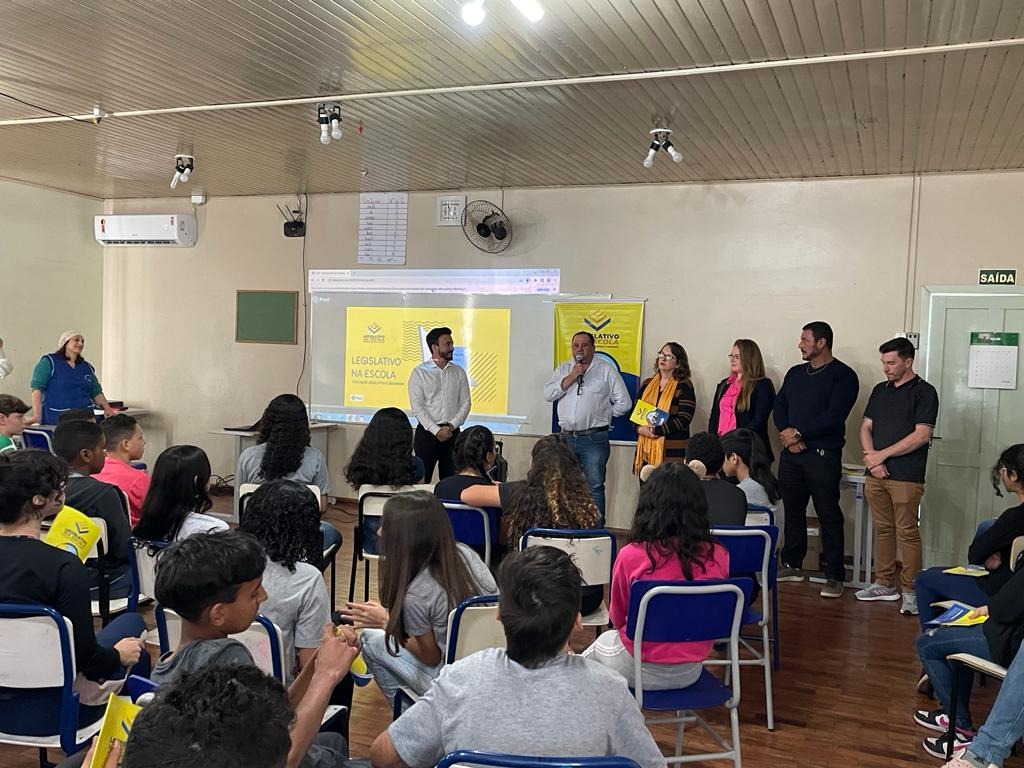Na terça-feira, dia 04 de julho do corrente ano, tivemos a apresentação do Projeto Legislativo na Escola, junto a Escola Estadual de Ensino Médio Luiz Isaías Zucchetti, regido pela instituição UVB. O projeto tem como missão, levar a educação Legislativa e Cidadania através da UVB aos alunos, e debater sobre a política e os poderes, em especial o Legislativo Municipal. Na E.E.E.M. Luiz Isaías Zucchetti, a apresentação foi realizada para 80 alunos do 7º ao 9º ano, com a presença do Presidente da Câmara, Einir José Baggio, Vice-Presidente, Joel Barbosa Ribeiro, e os Vereadores Ana Paula Marin, Mara Cristina Turmina Sangalli e Jônatas Sotoriva, a Diretora da Escola Fabrícia Brena Bussolotto, a Vice-Diretora Dineia Oro, a professora orientadora Elisa Regina Zucchetti, e os professores Marcia Menegat, Michele Tedesco, Gisele Decol e Gustavo Bordignon. A UVB percorrerá o país levando gratuitamente o projeto paras as escolas através da Câmara Municipal local.
