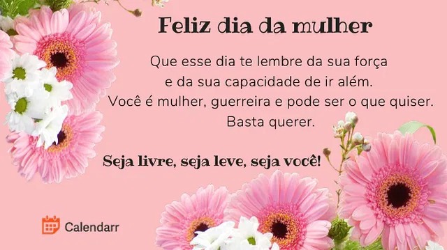 Que este Dia da Mulher seja repleto de reconhecimento, carinho e, principalmente, respeito.