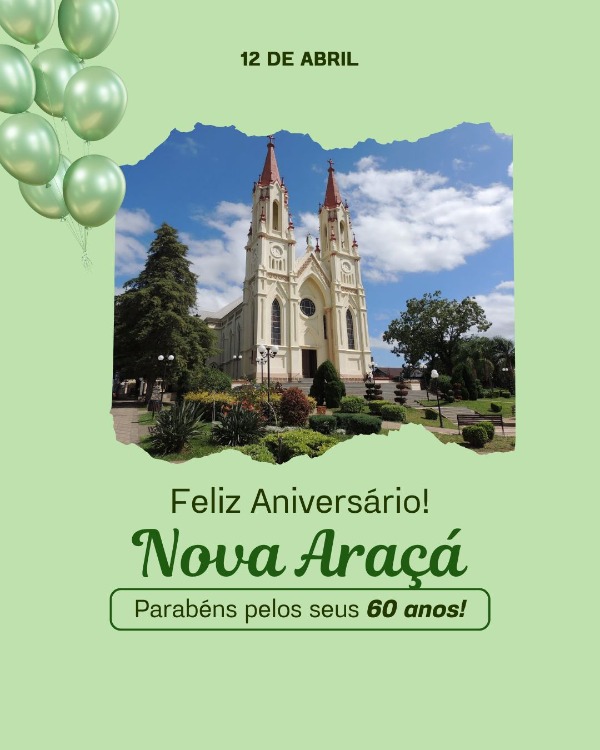 Hoje celebramos com orgulho os 60 anos de emancipação político-administrativa do nosso querido município! Em nome do Legislativo Municipal, homenageamos cada cidadão e cidadã que, com trabalho, dedicação e amor por esta terra, construiu e continua construindo a história de Nova Araçá. Que venham muitos anos de conquistas, união e desenvolvimento!