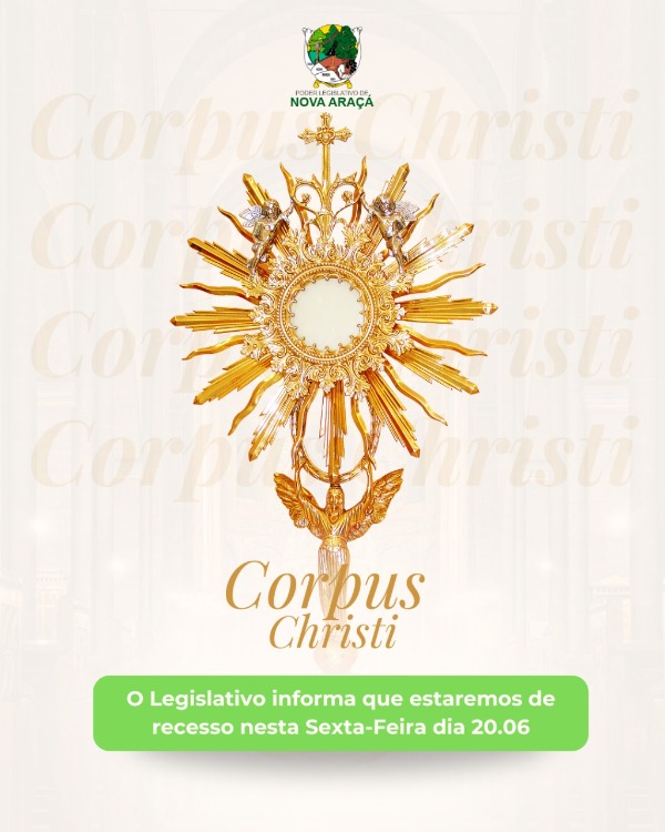 Neste feriado de Corpus Christi, o Legislativo deseja um dia de paz, fé e reflexão a todos os cidadãos. Que a presença de Cristo renove nossas esperanças e fortaleça nossa caminhada!
