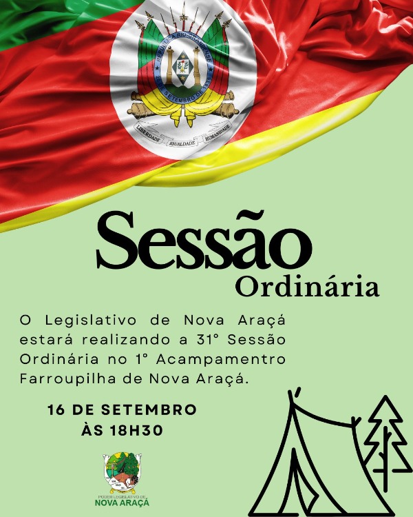 A 31ª sessão ordinária de 16 de setembro de 2025 acontecerá no 1° Acampamento Farroupilha de Nova Araçá!