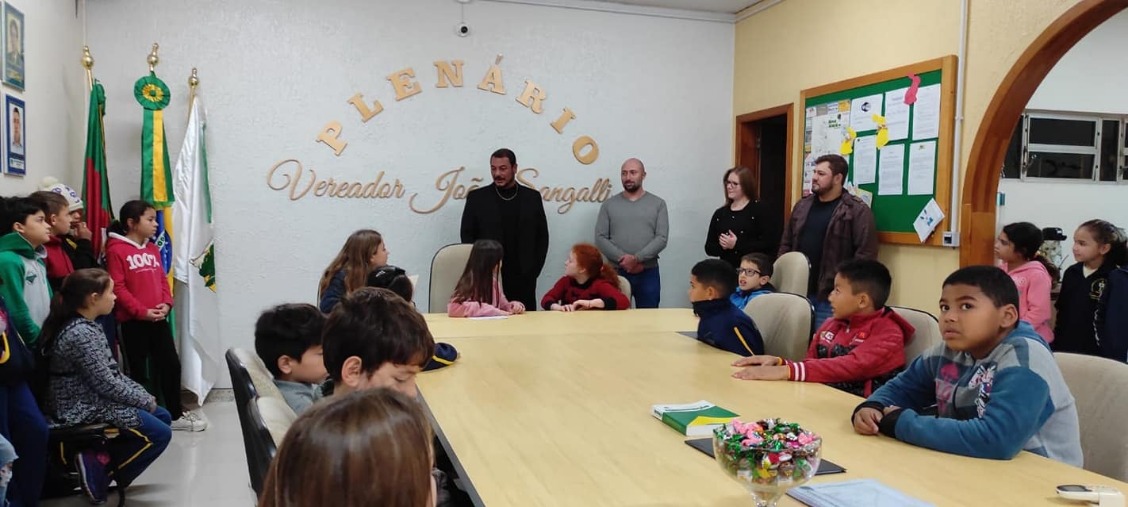 Na terça-feira, dia 03 de maio do corrente ano, os professores do 4º ano, turmas 41, 42 e 43 da Escola Municipal de Ensino Fundamental Olavo Bilac, proporcionaram aos alunos uma visita junto a Câmara de Vereadores. Na ocasião foram recepcionados pelo Presidente do Legislativo, Sr. Gildo Capellari, juntamente com os Parlamentares, Alexandre Damini, Ana Paula Marin e Joel Barbosa Ribeiro.