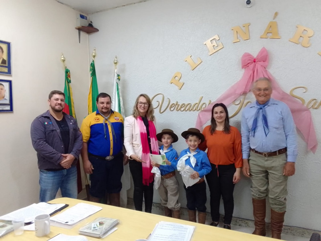 A Câmara de Vereadores, através da Vereadora Mara Cristina Turmina Sangalli com aprovação Plenária conferiu as Moções de Aplauso Legislativa aos integrantes do CTG Tronco do Araçá que se fizeram presente à Sessão juntamente com a família.