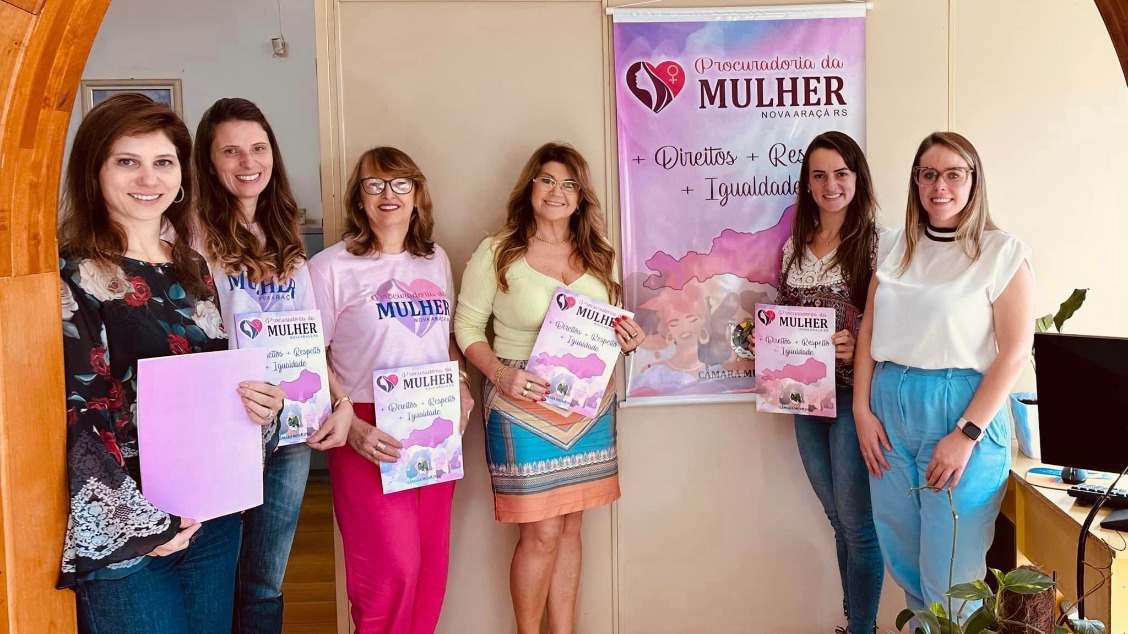 A Procuradoria da Mulher de Nova Araçá, representada no dia pela procurada da mulher, a Vereadora Mara Cristina Turmina Sangalli, junto da Assessoria Jurídica, receberam na Câmara Municipal de Vereadores,a Presidente do Poder Legislativo Serafinense, Morgana de Fátima Tecchio, a Vereadora Selma Favero Fincatto, juntamente com a diretora administrativa Angélica Favero e a Assessora Jurídica, Camila Dors Gasparotto.