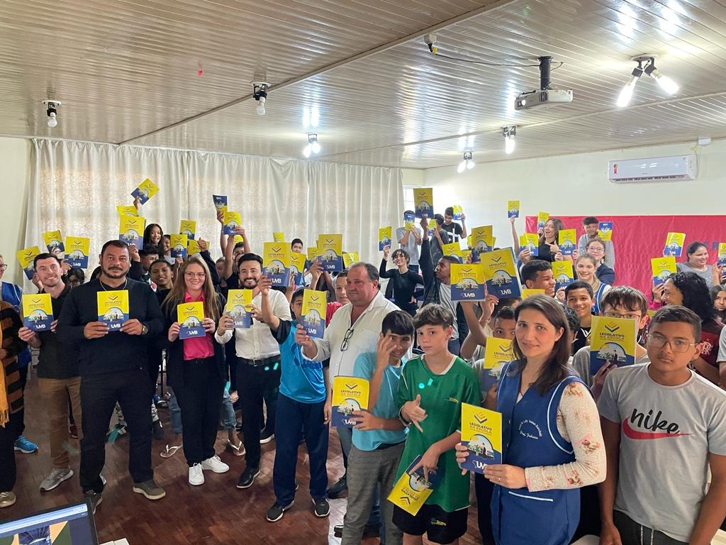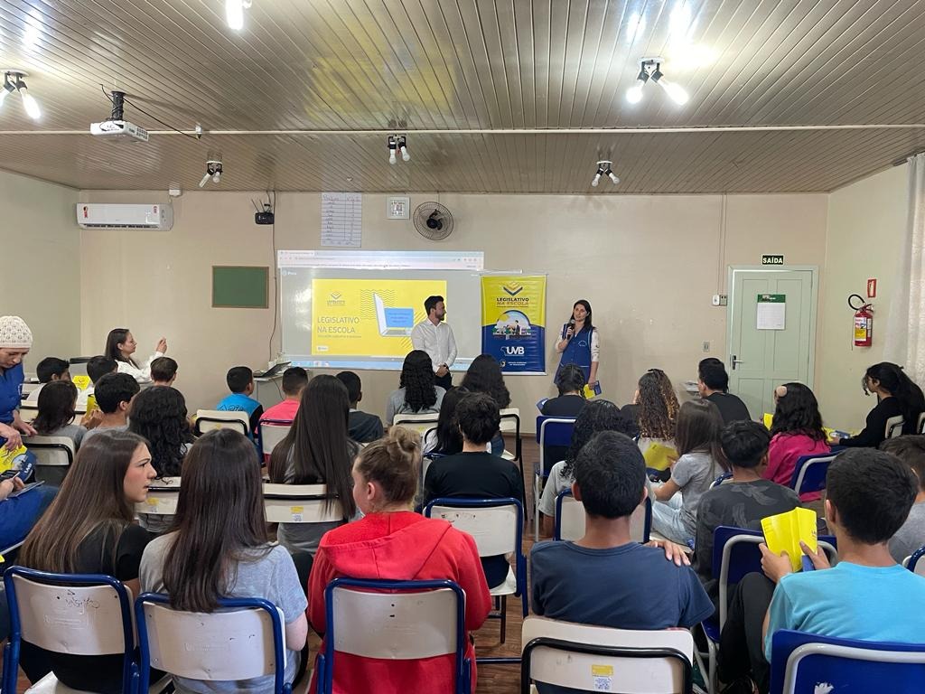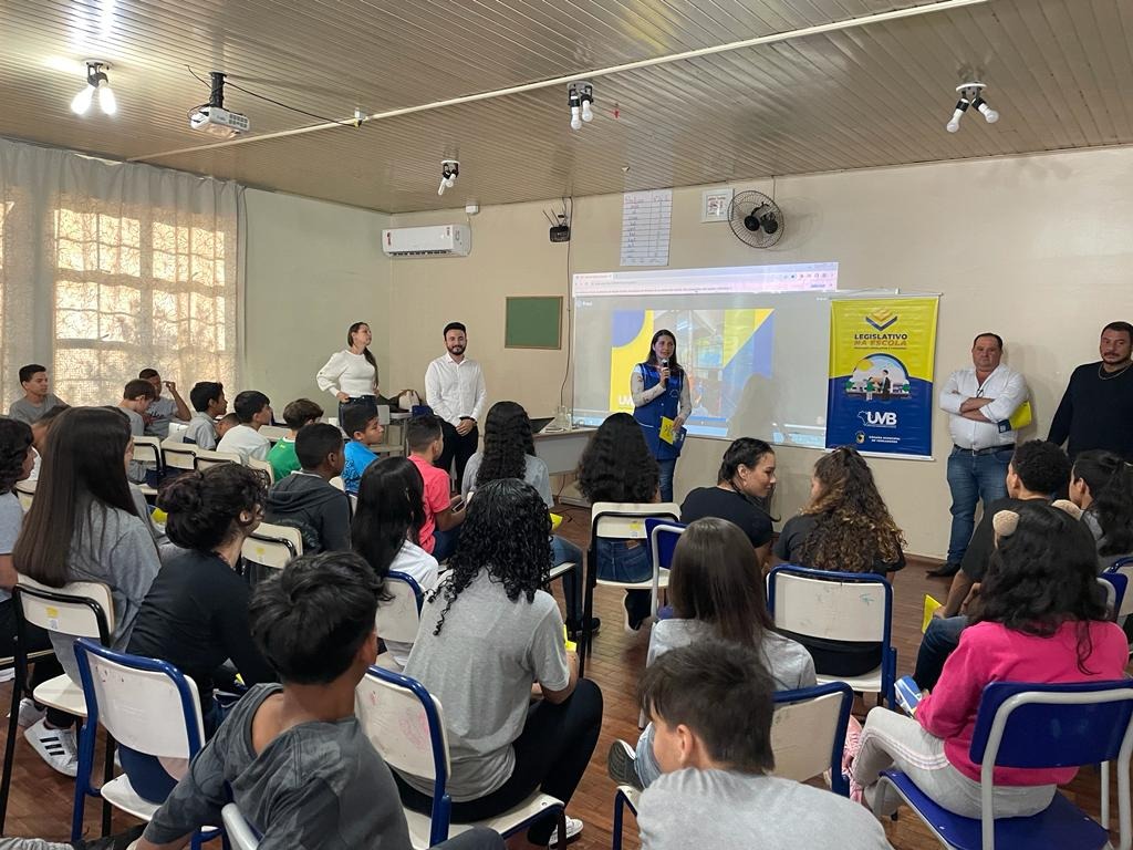 Na terça-feira, dia 04 de julho do corrente ano, tivemos a apresentação do Projeto Legislativo na Escola, junto a Escola Estadual de Ensino Médio Luiz Isaías Zucchetti, regido pela instituição UVB. O projeto tem como missão, levar a educação Legislativa e Cidadania através da UVB aos alunos, e debater sobre a política e os poderes, em especial o Legislativo Municipal. Na E.E.E.M. Luiz Isaías Zucchetti, a apresentação foi realizada para 80 alunos do 7º ao 9º ano, com a presença do Presidente da Câmara, Einir José Baggio, Vice-Presidente, Joel Barbosa Ribeiro, e os Vereadores Ana Paula Marin, Mara Cristina Turmina Sangalli e Jônatas Sotoriva, a Diretora da Escola Fabrícia Brena Bussolotto, a Vice-Diretora Dineia Oro, a professora orientadora Elisa Regina Zucchetti, e os professores Marcia Menegat, Michele Tedesco, Gisele Decol e Gustavo Bordignon. A UVB percorrerá o país levando gratuitamente o projeto paras as escolas através da Câmara Municipal local.