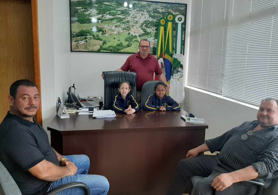 A visita aconteceu no Gabinete do Prefeito Municipal, onde os alunos tiveram a oportunidade de conversar com os representantes da Câmara Municipal de Vereadores de Nova Araçá, juntamente com o Prefeito, o Senhor Ademir Dall Pozzo.