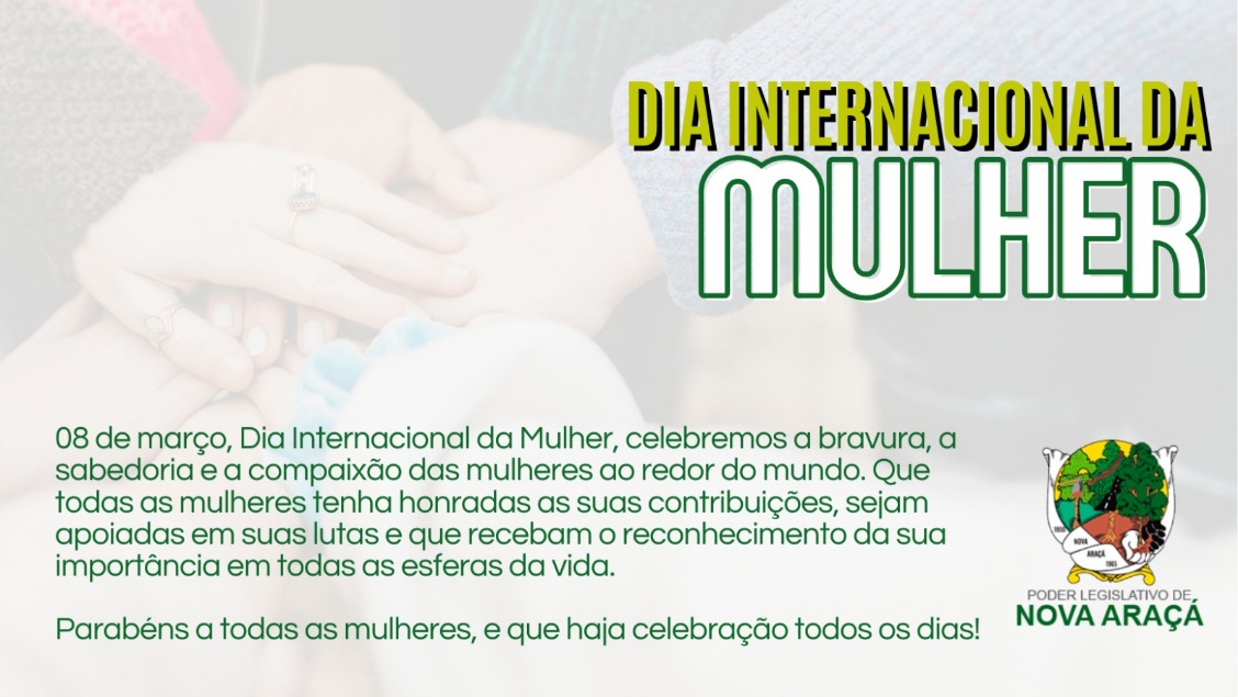 Neste dia tão importante, a Câmara de Vereadores de Nova Araçá deseja estender felicitações a todas as mulheres que fazem parte de nossa comunidade, bem como àquelas que desempenham um papel em nossa política, às que empreendem e têm coragem, e às que são alicerces fortes nas famílias com sua força, determinação e amorosidade. No Dia Internacional da Mulher, é imperativo reconhecer e celebrar não apenas as conquistas, mas também a resiliência e a determinação que cada mulher assume em sua jornada.